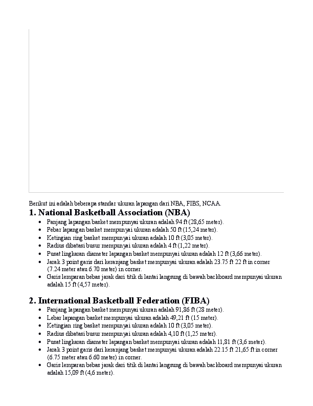 Ukuran Panjang Dan Lebar Lapangan Basket Standar Fiba Nba